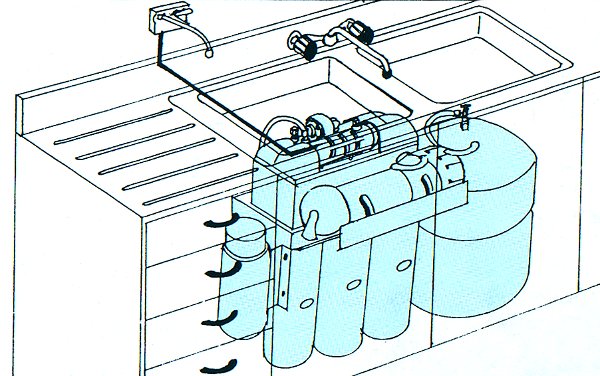 Bu sistemimiz içme suyu amaçlı olup, evlerde, ofisler, toplu çalışan işyerlerinde, kafeterya, kahve, lokanta ve benzeri yerlerin kullanabileceği mükemmel hijyene sahip üstün güvenilir su kalitesi sağlayan bir cihazdır. İhtiva ettiği TFC membran sayesinde 0.0001 micron kapasitesinde filitrasyonuyla çözünmüş katı maddeleri, mineralleri, kireci, bakteri, küf, sodyum gibi maddeleri %92-98 oranında uzaklaştırarak güvenilir içme suyu haline dönüştürür. Bu sistem çeşitli amaçlarla oluşmuştur. Ön filitre sayesinde sudake sediment ve partıküller uzaklaştırılır. İkinci filitre 5 micronluk filitrasyon sağlar. Aktif karbon filitre sayesinde, renk, koku, bulanıklık, klor kokusu giderilmiş olur. Buradan akan membrana gelir ve iyi kalitede içme suyuna ulaşarak kendi stok tankına gelir. Buradan son inline karbon filitreden geçerek hizmet vermeye devam eder.Tezgah Alyı Reverse Osmoz Cihazları